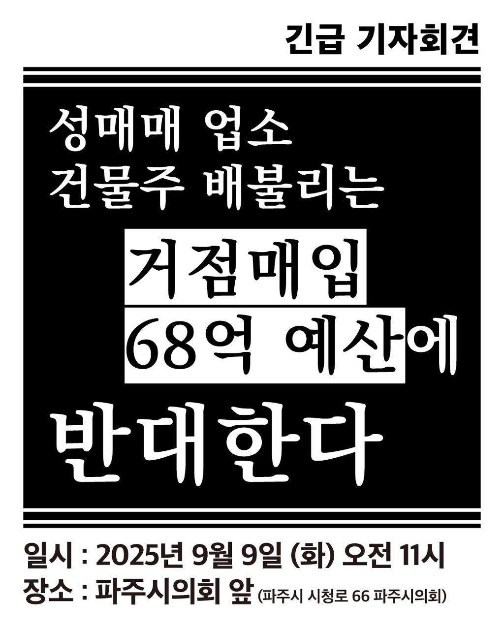 [긴급 기자회견] 성매매 업소 건물주 배불리는 거점매입 68억 예산에 반대한다!!