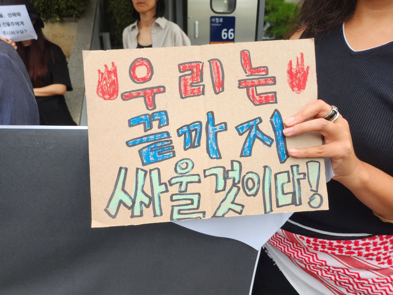 A(용주골 여종사자모임 자작나무회), 나영(성적권리와 재생산정의를 위한 센터 셰어 SHARE), 홍지연, 윤숙희, 타다, 조예지(용주골 성노동자와 연대하는 시민모임), 자아(팔레스타인평화연대)의 발언이 있었습니다. 자세한 내용은 사후 보도자료 참고 바랍니다. 감사합니다.